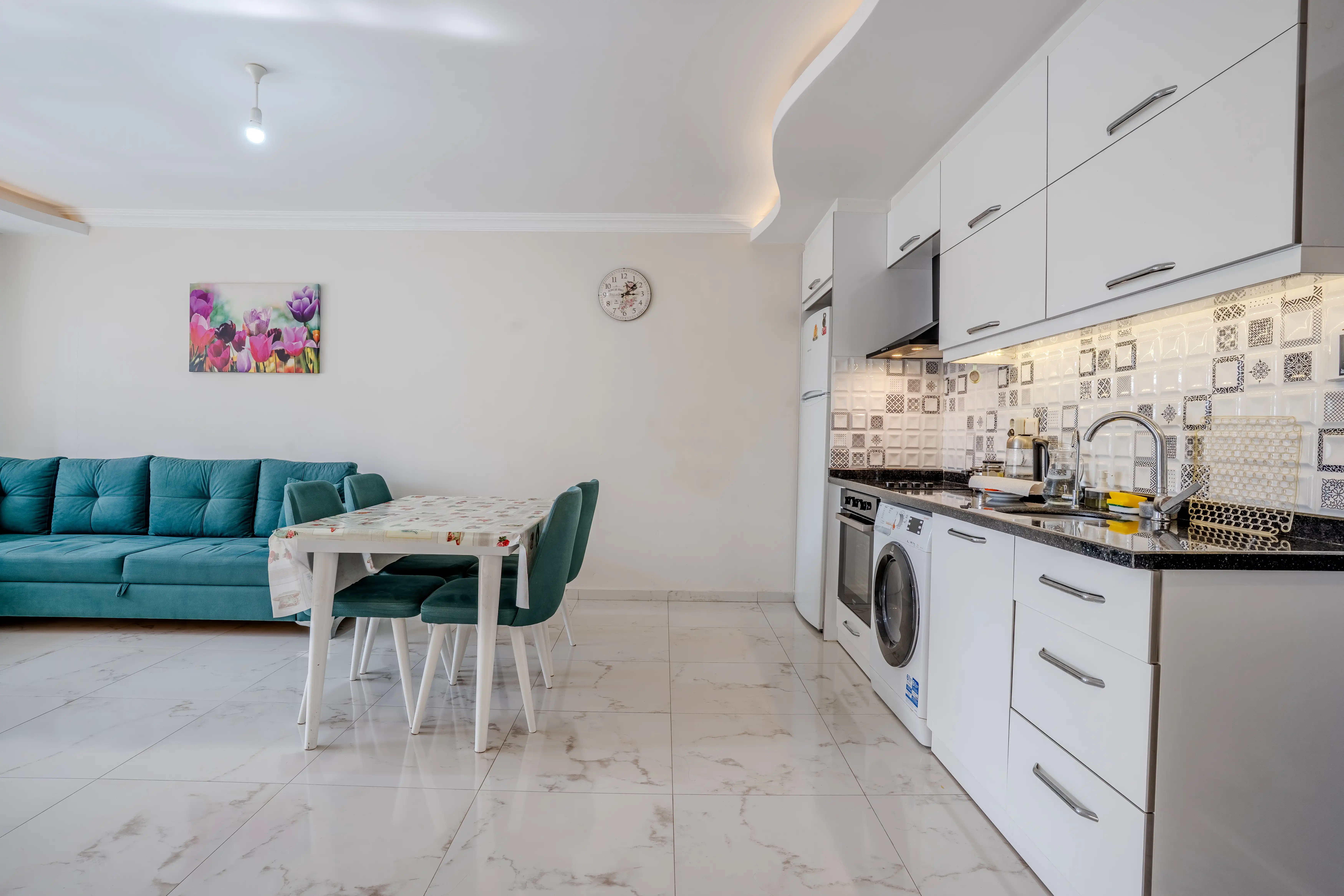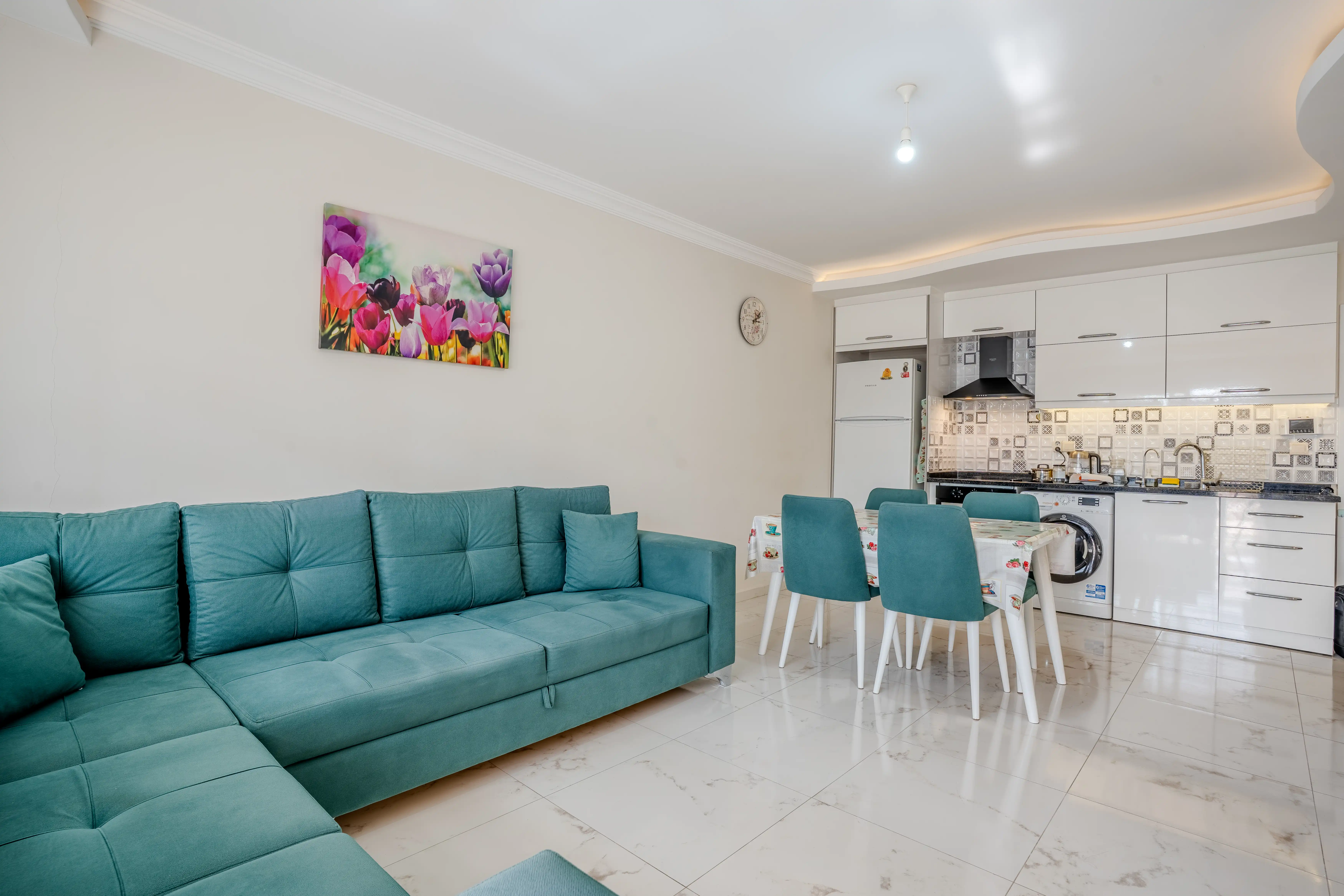 Уютная квартира 1+1 на 3 этаже с площадью 60 м² предлагает отличное пространство для комфортного проживания. Просторная гостиная с открытой