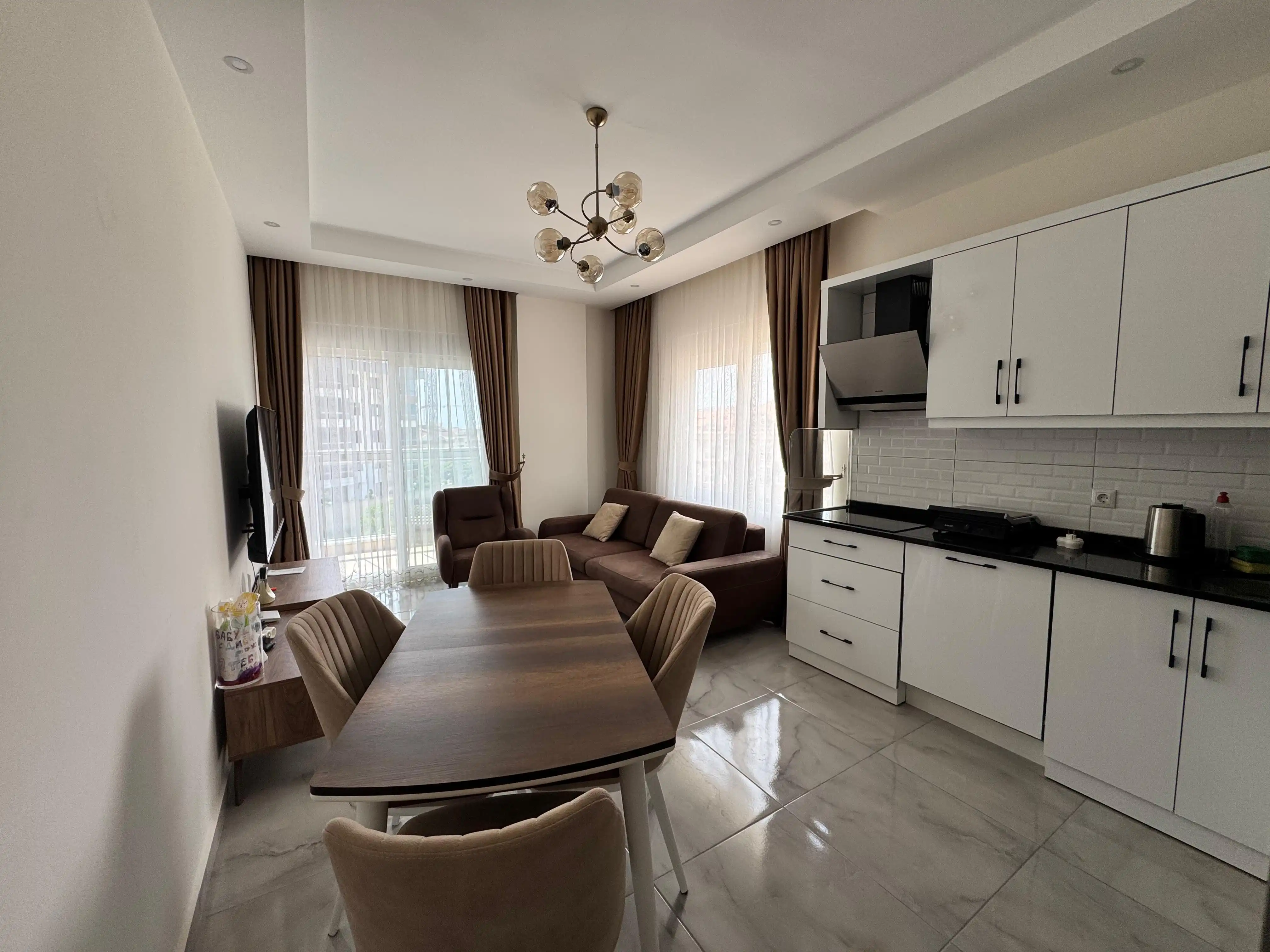 Предлагается на продажу стильная квартира планировки 1+1 в одном из самых престижных районов Аланьи — Оба. Жильё
