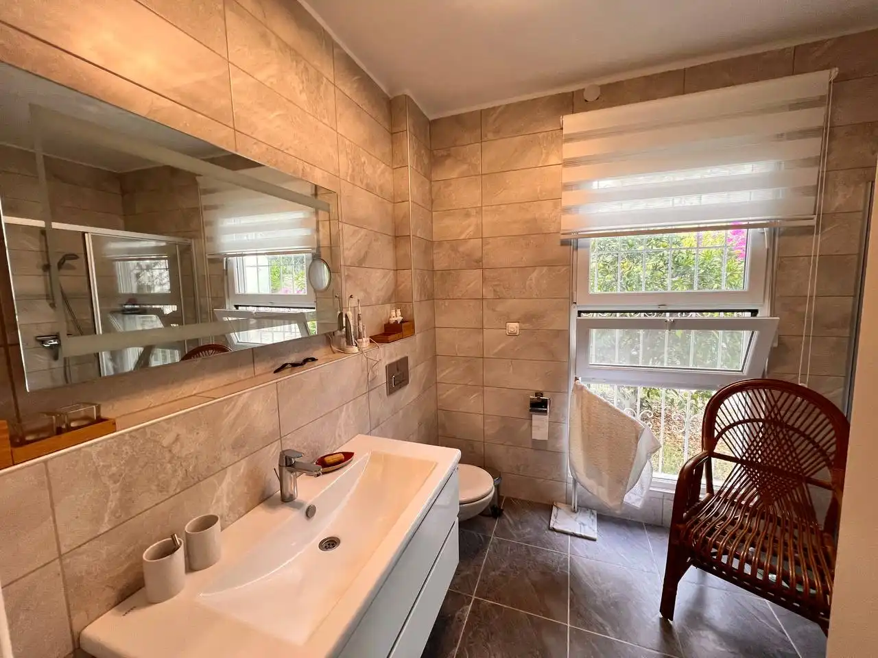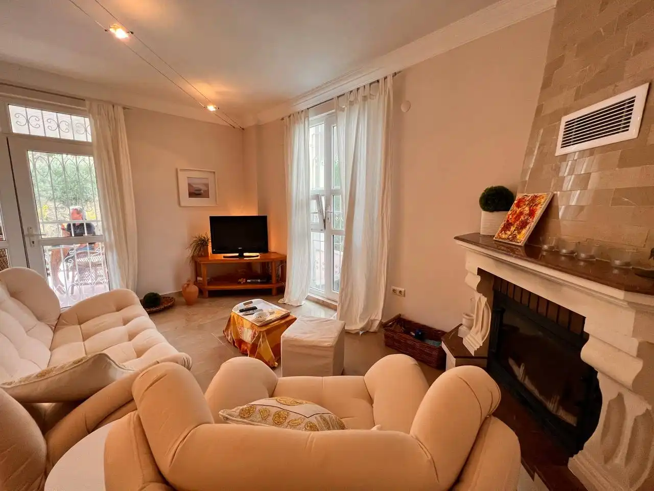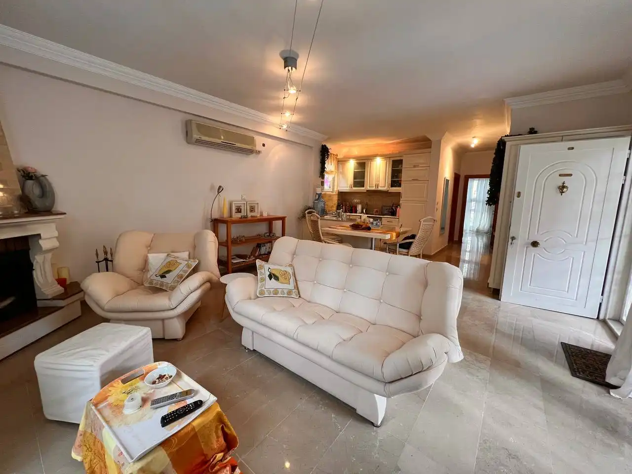 Представляем уютную виллу 2+1 площадью 125 м² в живописном районе Авсаллар — среди оливковых деревьев и хвойного леса. Просторный дом